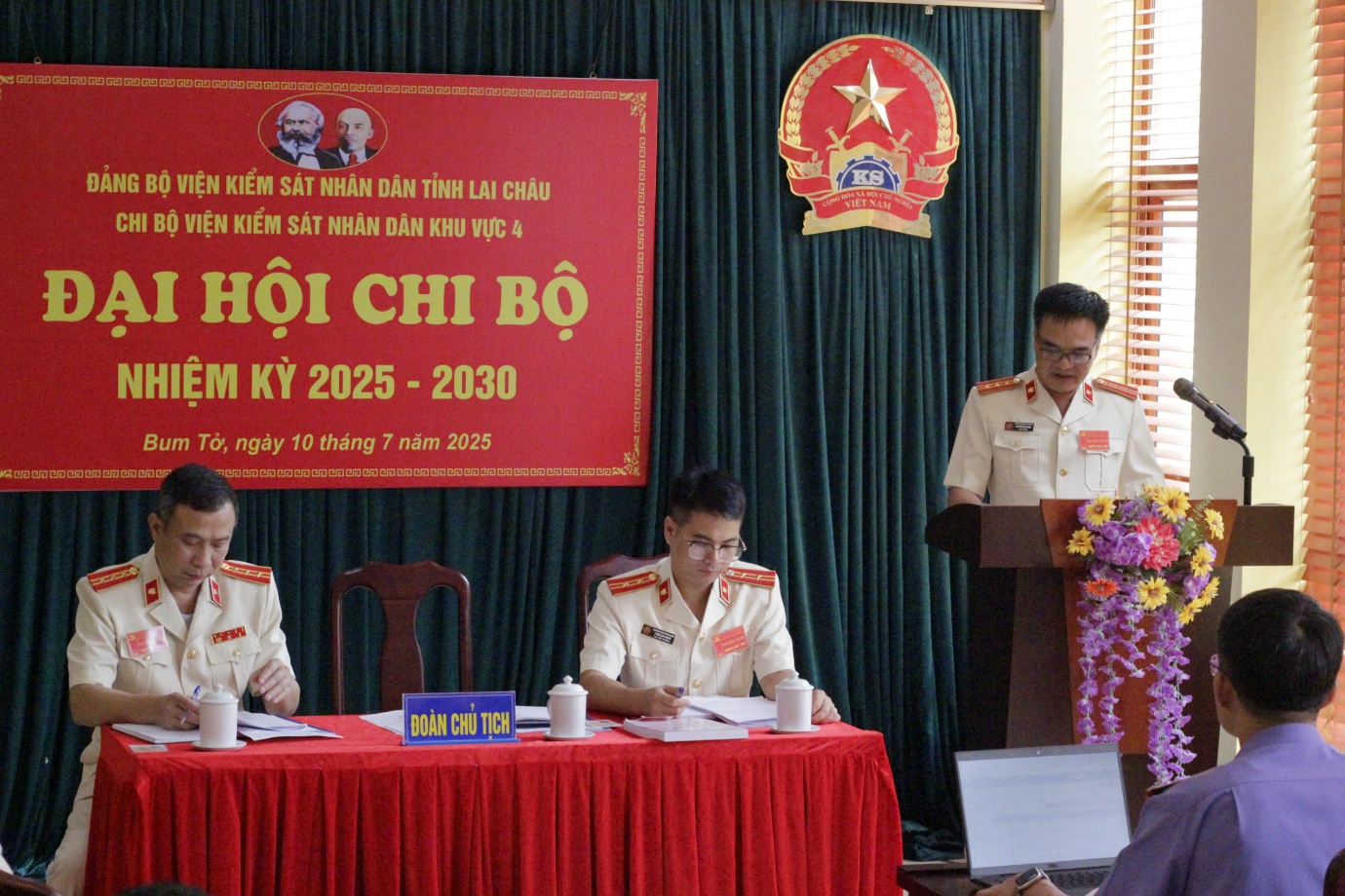 Chi bộ VKSND khu vực 4 được thành lập theo Quyết định số 392 ngày 30/6/2025 của Đảng ủy VKSND tỉnh Lai Châu, trên cơ sở hợp nhất giữa Chi bộ Viện kiểm sát nhân dân huyện Mường Tè và Chi bộ Viện kiểm sát nhân dân huyện Nậm Nhùn trực thuộc đảng bộ các huyện Mường Tè, Nậm Nhùn.Thực hiện các Nghị quyết của Đảng về sắp xếp, tinh gọn bộ máy thực hiện chính quyền địa phương hai cấp, cùng với việc sắp xếp tổ chức bộ máy ngành Kiểm sát nhân dân theo hướng tinh gọn, hiệu lực, hiệu quả đáp ứng yêu cầu cải cách tư pháp trong kỷ nguyên mới, cùng với việc chấm dứt hoạt động của VKSND cấp huyện thành lập VKSND khu vực, tổ chức đảng và đảng viên của VKSND khu vực trực thuộc đảng bộ VKSND tỉnh Lai Châu đảm bảo công tác lãnh đạo, chỉ đạo xuyên suốt. Đại hội Chi bộ tổng kết, đánh giá kết quả hoạt động nhiệm kỳ 2020 – 2025, đề ra phương hướng, mục tiêu, nhiệm vụ nhiệm kỳ 2025 – 2030 đồng thời rút ra bài học kinh nghiệm; tổng hợp tham gia góp ý dự thảo các văn kiện trình Đại hội cấp trên. Trong nhiệm kỳ 2020–2025, mặc dù còn nhiều khó khăn do địa bàn rộng, giao thông khó khăn, nhưng hai Chi bộ tiền thân luôn nhận được sự quan tâm, chỉ đạo sâu sát của Huyện ủy Mường Tè, Nậm Nhùn và Đảng ủy VKSND tỉnh Lai Châu. Với tinh thần đoàn kết, dân chủ, kỷ cương và trách nhiệm, các Chi bộ đã hoàn thành tốt chức năng, nhiệm vụ được giao, từng bước nâng cao chất lượng công tác kiểm sát, góp phần giữ vững an ninh chính trị, trật tự an toàn xã hội trên địa bàn.