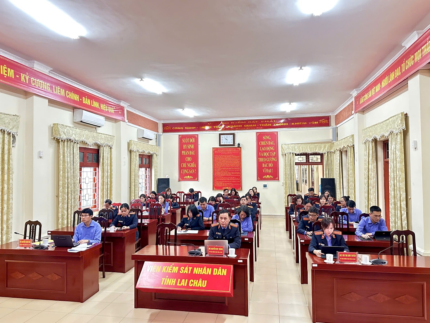 Tại điểm cầu Đảng bộ VKSND tỉnh Lai Châu, Ban Thường vụ Đảng uỷ chủ trì hội nghị cùng với sự tham gia của các đồng chí đảng viên thuộc VKSND tỉnh. Đồng thời, tổ chức 04 điểm cầu tại các chi bộ VKSND khu vực trực thuộc Đảng bộ VKSND tỉnh.
