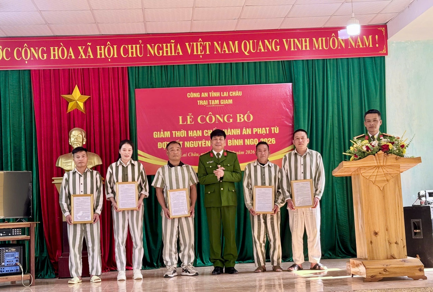 Theo các Quyết định của Hội đồng xét giảm thời hạn chấp hành án phạt tù, Đợt tết Nguyên Đán Bính Ngọ 2026, Trại tạm giam, Công an tỉnh Lai Châu có 11 phạm nhân được xét giảm thời hạn chấp hành án phạt tù với thời gian được giảm trên 79 tháng, trong đó có 02 phạm nhân được giảm hết thời hạn tù còn lại. Đây là những phạm nhân có quá trình lao động cải tạo tốt, không vi phạm nội quy cơ sở giam giữ, đủ điều kiện, đảm bảo tiêu chuẩn xét giảm thời hạn chấp hành án phạt tù theo quy định của pháp luật.