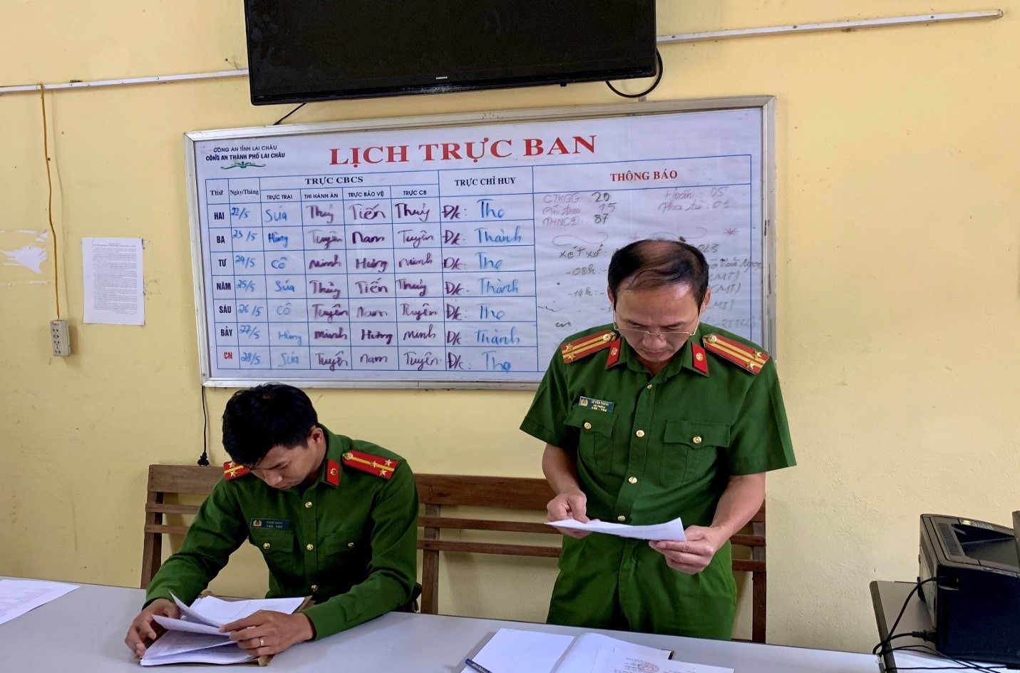 Tại buổi làm việc, sau khi công bố quyết định kiểm sát, đoàn đã nghe đại diện Lãnh đạo cơ sở tạm giữ, tạm giam Công an thành phố báo cáo kết quả công tác tạm giữ, tạm giam và thi hành án phạt tù tại Nhà tạm giữ - Công an thành phố Lai Châu 06 tháng đầu năm 2023 và trực tiếp nghiên cứu hồ sơ, kiểm tra sổ sách, các tài liệu có liên quan; kiểm tra các phòng, buồng tạm giữ, tạm giam, gặp hỏi trực tiếp những người bị tạm giữ, tạm giam, phạm nhân.