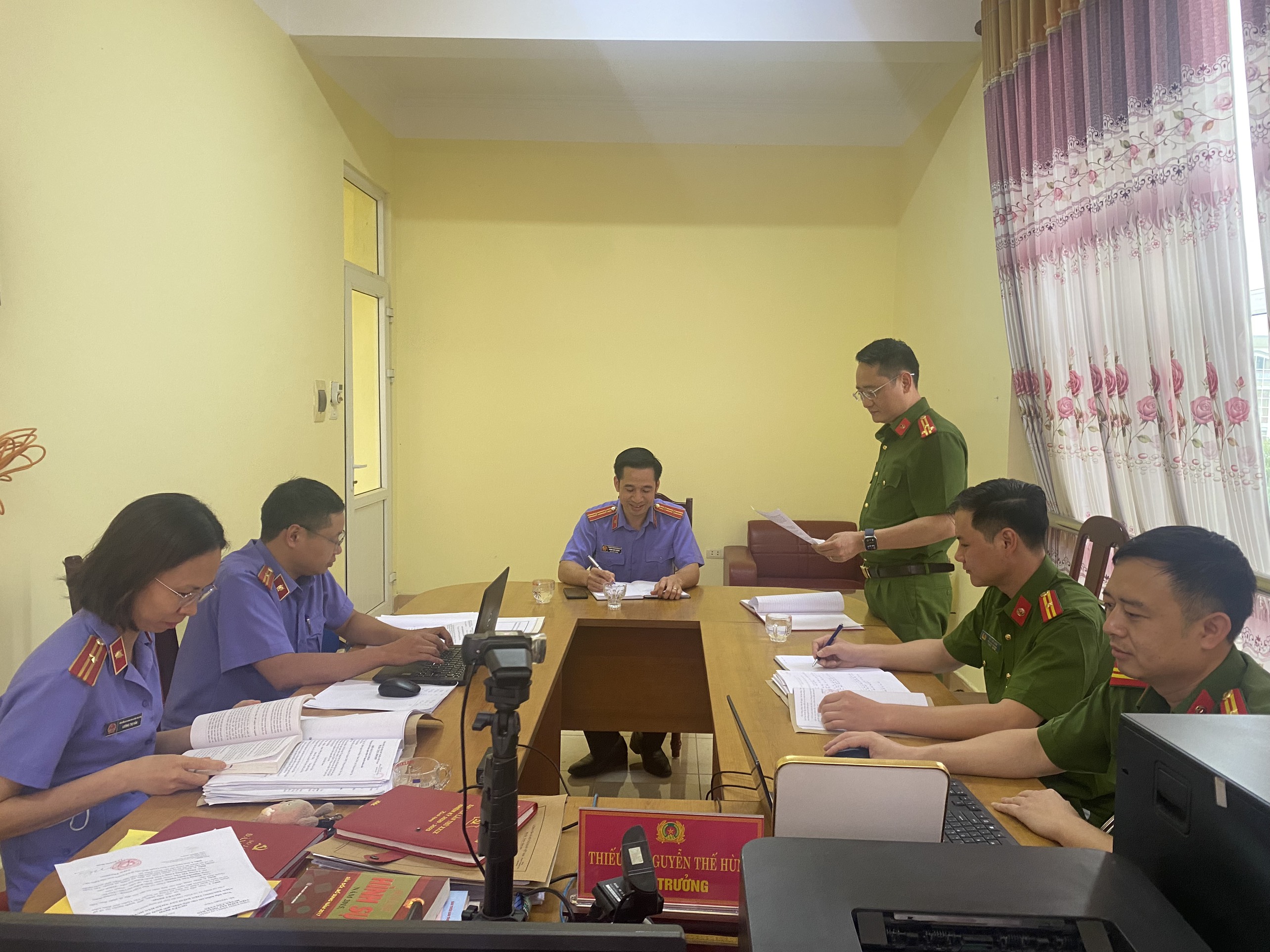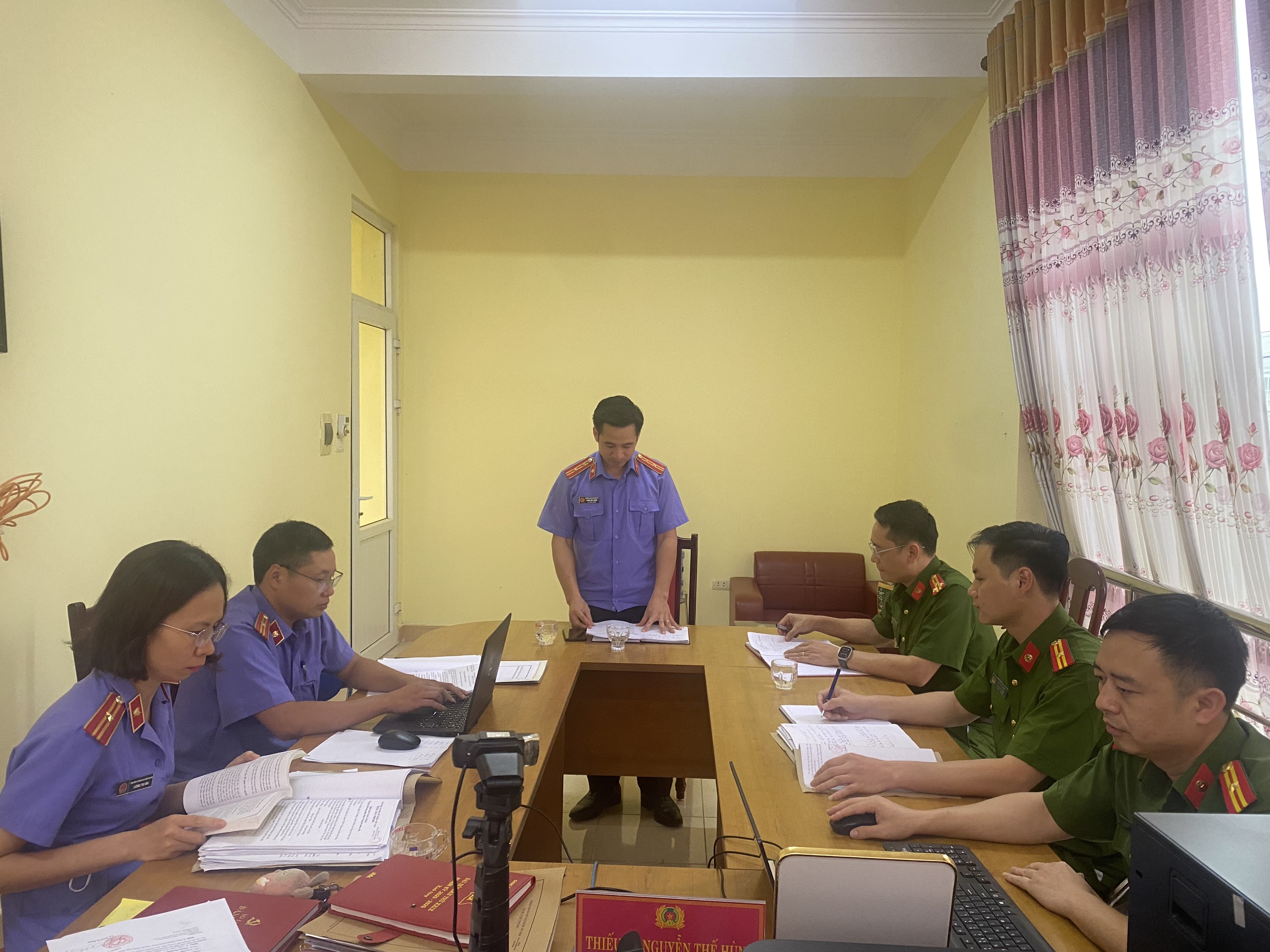Đoàn Kiểm sát do đồng chí Hoàng Văn Trưởng, Phó Viện trưởng VKSND huyện Tân Uyên làm Trưởng đoàn; đại diện Cơ quan CSĐT Công an huyện Tân Uyên có đồng chí Nguyễn Mạnh Tân, Phó thủ trưởng Cơ quan CSĐT, các Điều tra viên và cán bộ điều tra của đơn vị.