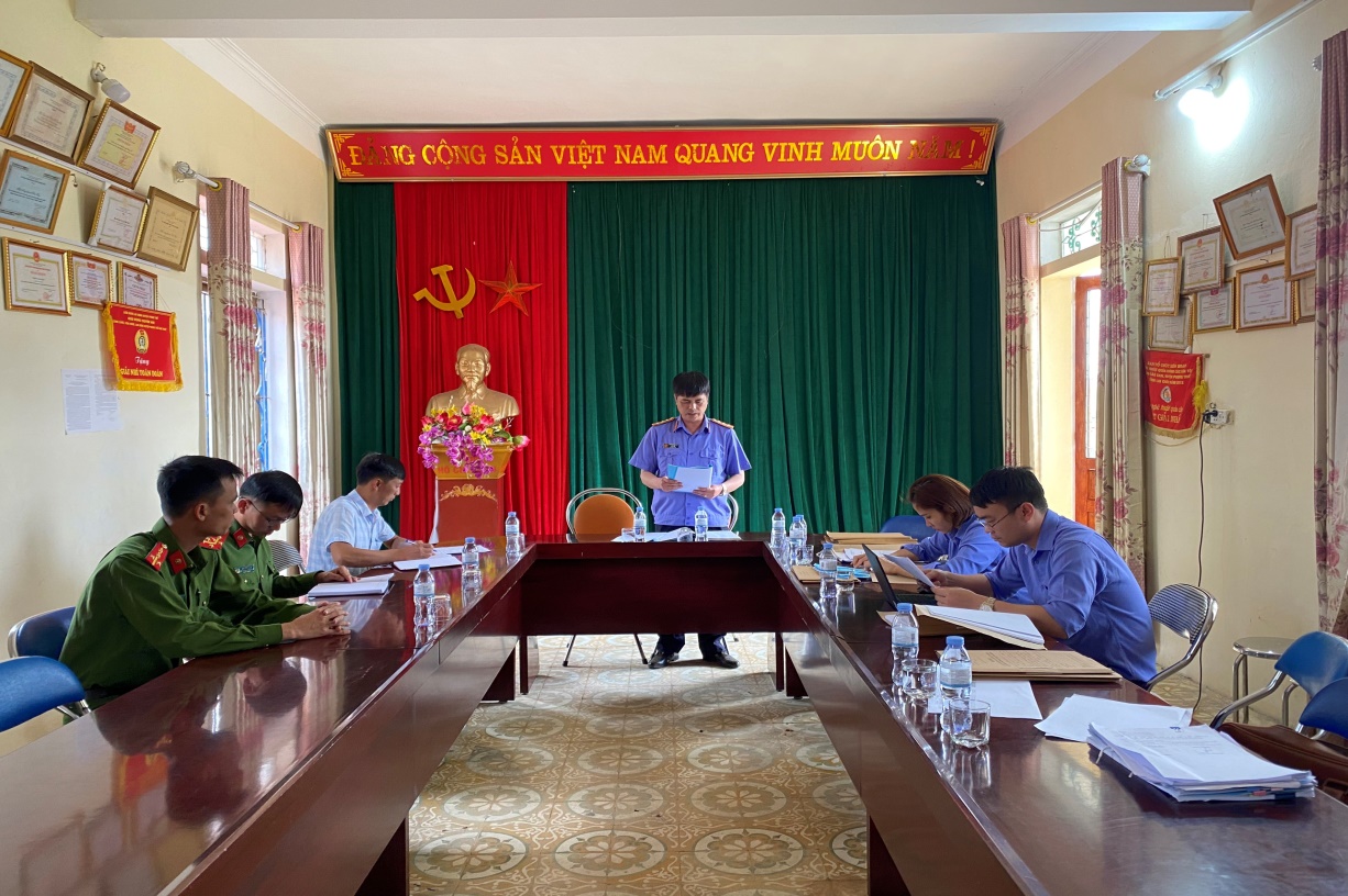 Ảnh: Đ/c Lê Sỹ Hiếu công bố kết luận sơ bộ buổi trực tiếp kiểm sát thi hành án hình sự tại UBND xã Dào San