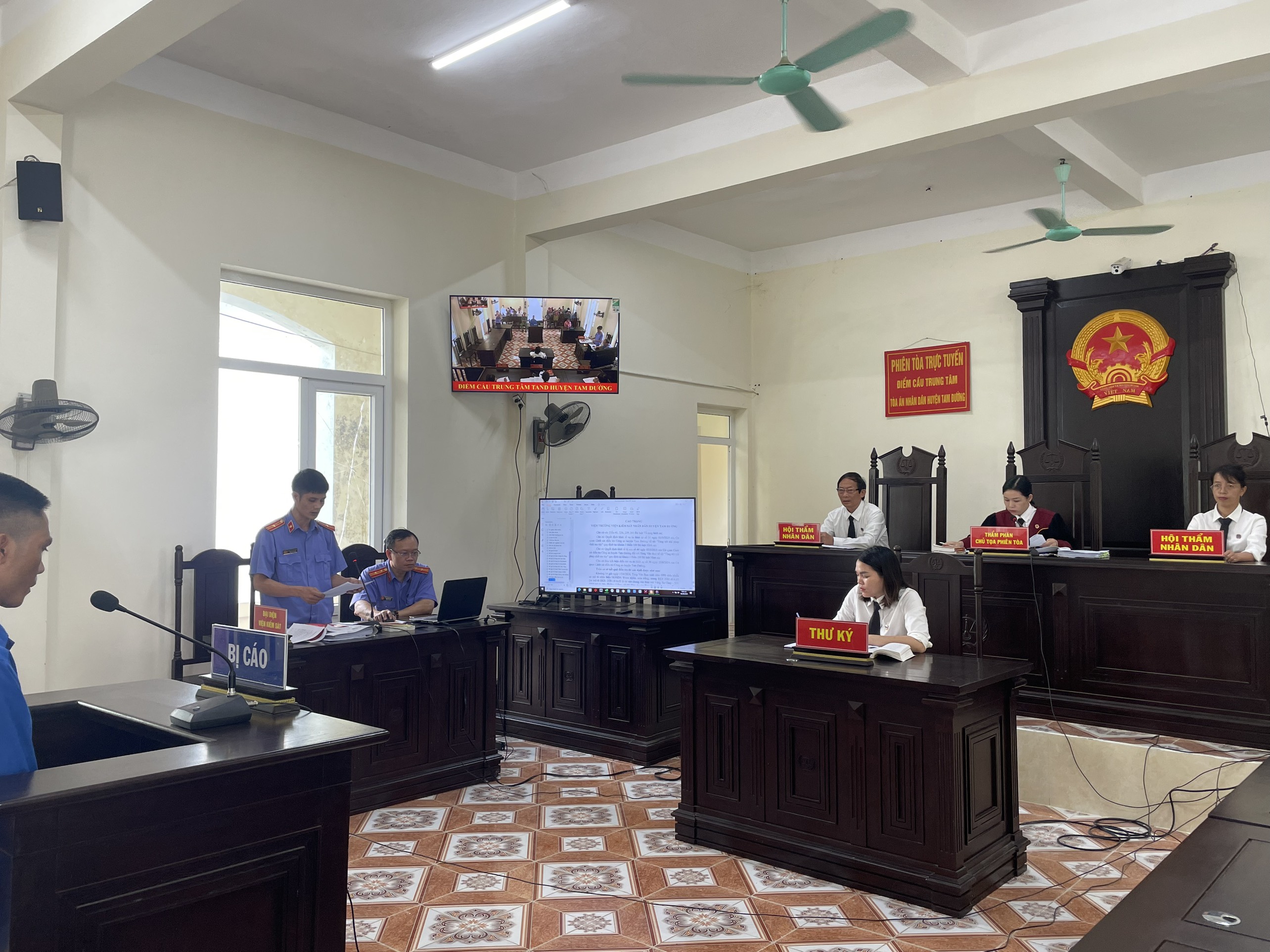 Viện kiểm sát nhân dân huyện Tam Đường phối hợp tổ chức phiên tòa hình sự xét xử trực tuyến rút kinh nghiệm
