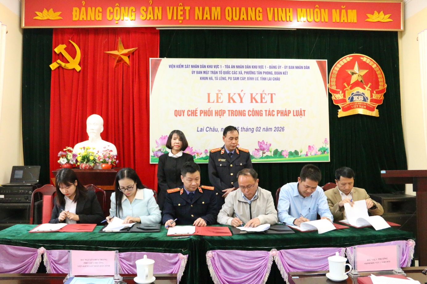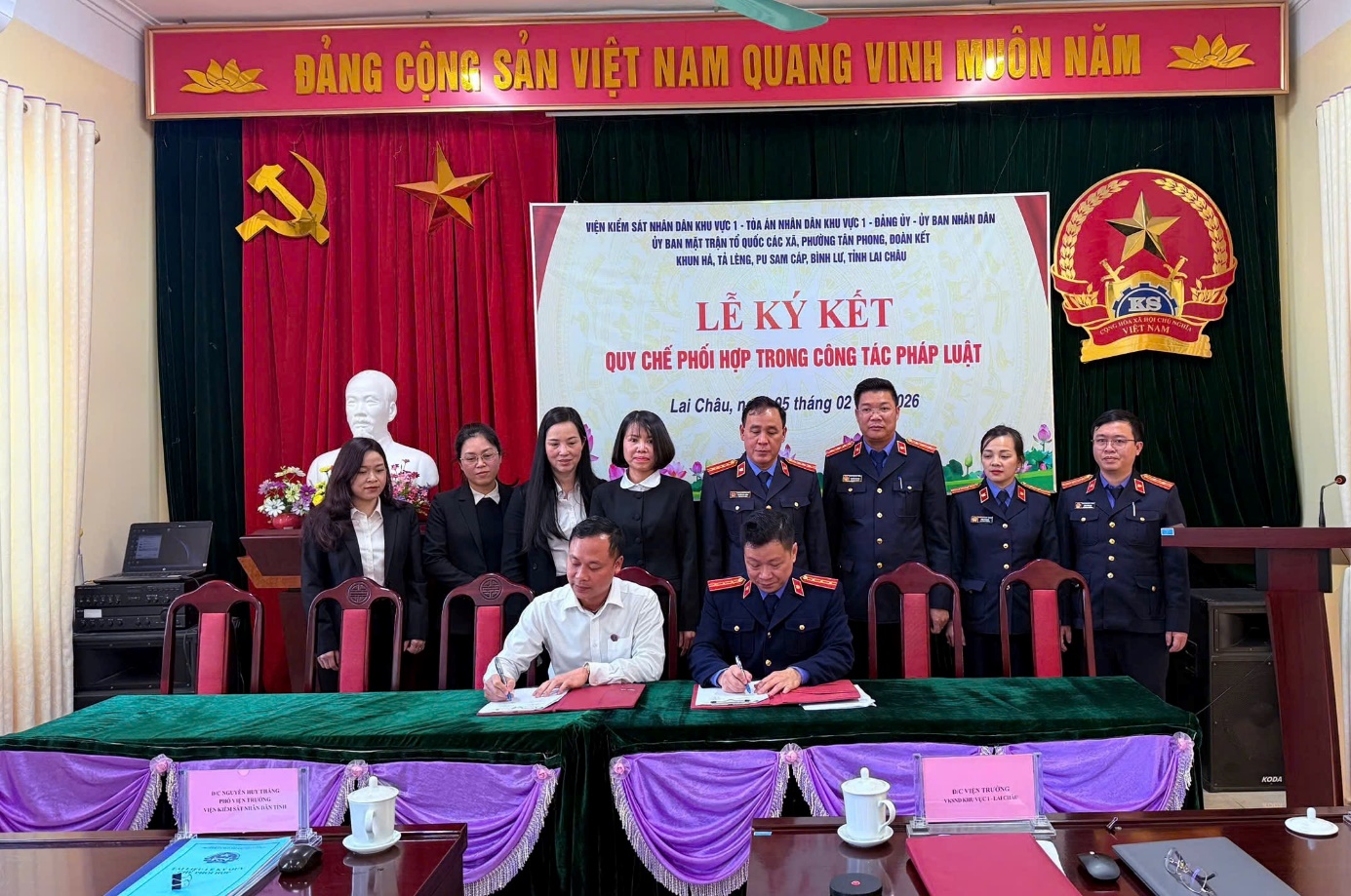 Việc ký kết Quy chế phối hợp giữa Viện kiểm sát nhân dân khu vực, Tòa án nhân dân khu vực 1 với Đảng ủy, UBND, Ủy ban MTTQ các xã, phường: Tân Phong, Đoàn Kết, Pu Sam Cáp, Tả Lèng, Khun Há, Bình Lư không chỉ mang ý nghĩa về mặt tổ chức, mà còn thể hiện quyết tâm chính trị của các cơ quan, đơn vị trong việc xây dựng cơ chế phối hợp chặt chẽ, hiệu quả, hướng tới mục tiêu chung là nâng cao hiệu lực, hiệu quả quản lý nhà nước, phòng ngừa vi phạm pháp luật ngay từ cơ sở, phục vụ tốt nhiệm vụ phát triển kinh tế – xã hội và bảo đảm quốc phòng, an ninh trên địa bàn.