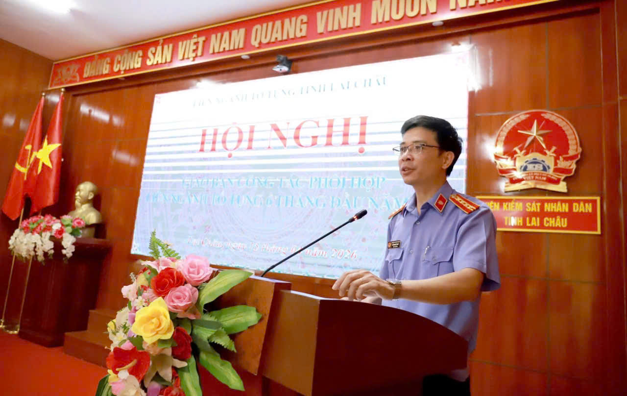 Viện kiểm sát nhân dân tỉnh Lai Châu chủ trì Hội nghị giao ban công tác phối hợp liên ngành tố tụng 6 tháng đầu năm, triển khai nhiệm vụ trọng tâm công tác phối hợp 6 tháng cuối năm 2026