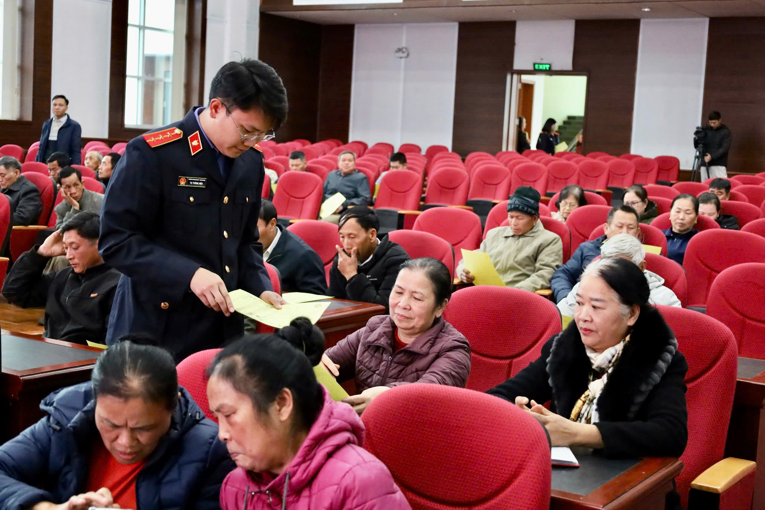 Tham dự Hội nghị có đồng chí Nguyễn Lệ Thủy, Phó Chủ tịch UBND phường Đoàn Kết và khoảng gần 300 đại biểu tham dự, gồm: Lãnh đạo, cán bộ các phòng chuyên môn của UBND phường Đoàn Kết, Mặt trận Tổ quốc, các đoàn thể chính trị – xã hội; Bí thư chi bộ, Trưởng thôn, Tổ trưởng dân phố, Ban công tác Mặt trận, Hội phụ nữ, Hội người cao tuổi, … và đông đảo Nhân dân trên địa bàn phường Đoàn kết. Tại hội nghị, đồng chí Nguyễn Thị Hoa, Trưởng phòng kiểm sát sán dân sự, hành chính, kinh doanh thương mại (Phòng 9) đã trao Bảng niêm yết thông tin Nghị quyết số 205/2025/QH15 cho Đại diện Lãnh đạo UBND phường Đoàn Kết để thực hiện việc niêm yết Bảng thông tin tại trụ sở UBND phường Đoàn Kết.