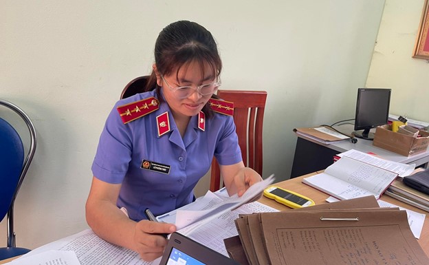 Đồng chí trong đoàn kiểm sát tiến hành kiểm tra tài liệu, hồ sơ, sổ sách