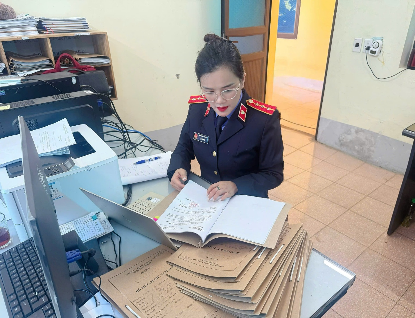 Các đồng chí Kiểm sát viên, Kiểm tra viên Phòng 8 VKSND tỉnh kiểm tra hồ sơ người bị tạm giam