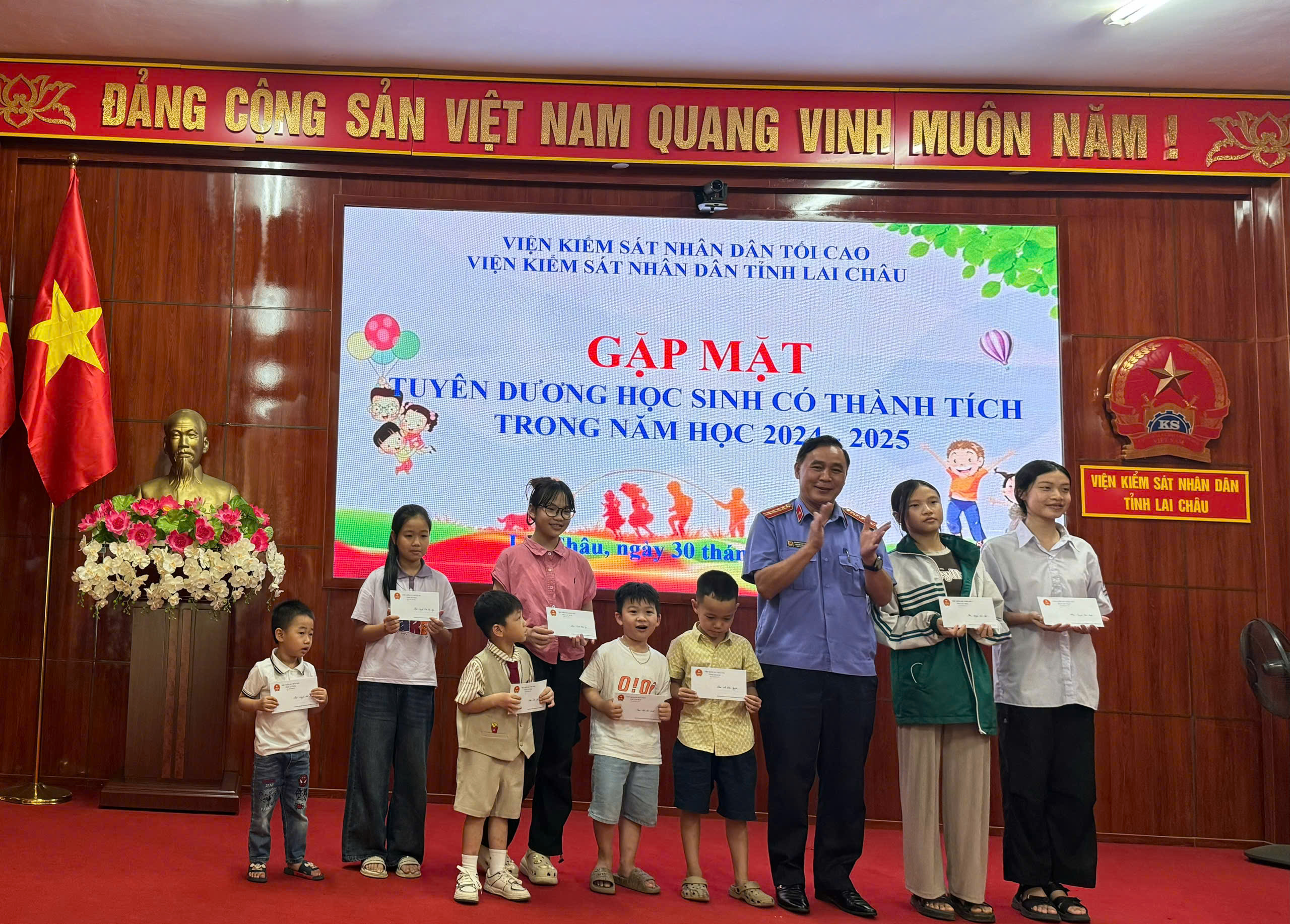 - ngày đăng: 31/05/2025Hòa chung trong không khí vui tươi của thiếu nhi cả nước chào mừng Ngày Quốc tế Thiếu nhi 1/6, chiều ngày 30/5/2025, VKSND tỉnh Lai Châu đã tổ chức Chương trình “Tết Thiếu nhi năm 2025 - Gặp mặt, tuyên dương học sinh có thành tích trong năm học 2024 - 2025” cho con em công chức, người lao động trong đơn vị.
