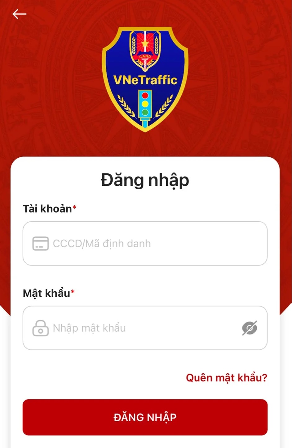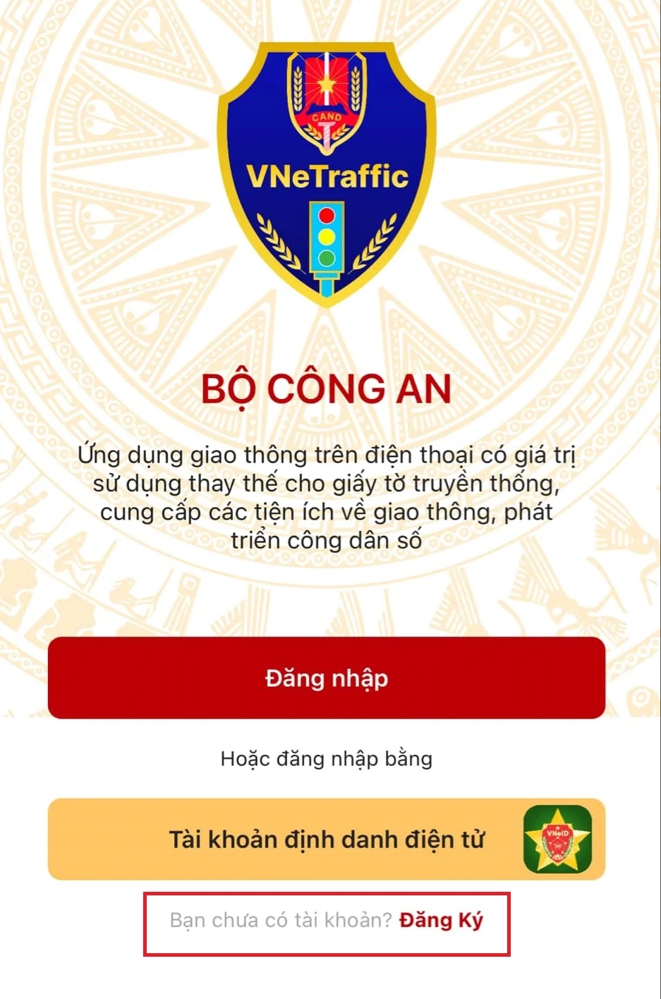 (Bạn có thể sử dụng Tài khoản định danh điện tử (VNeID) để đăng nhập tuy nhiên phiên bản hiện tại chưa kết nối với tài khoản này).