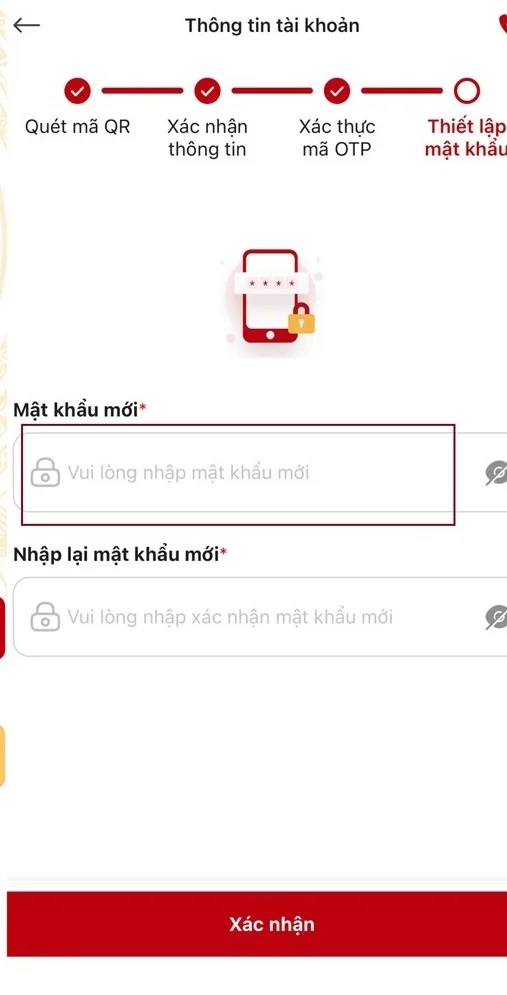 - Thiết lập mật khẩu. (Lưu ý: Đảm bảo mật khẩu an toàn và dễ nhớ để bảo vệ tài khoản)