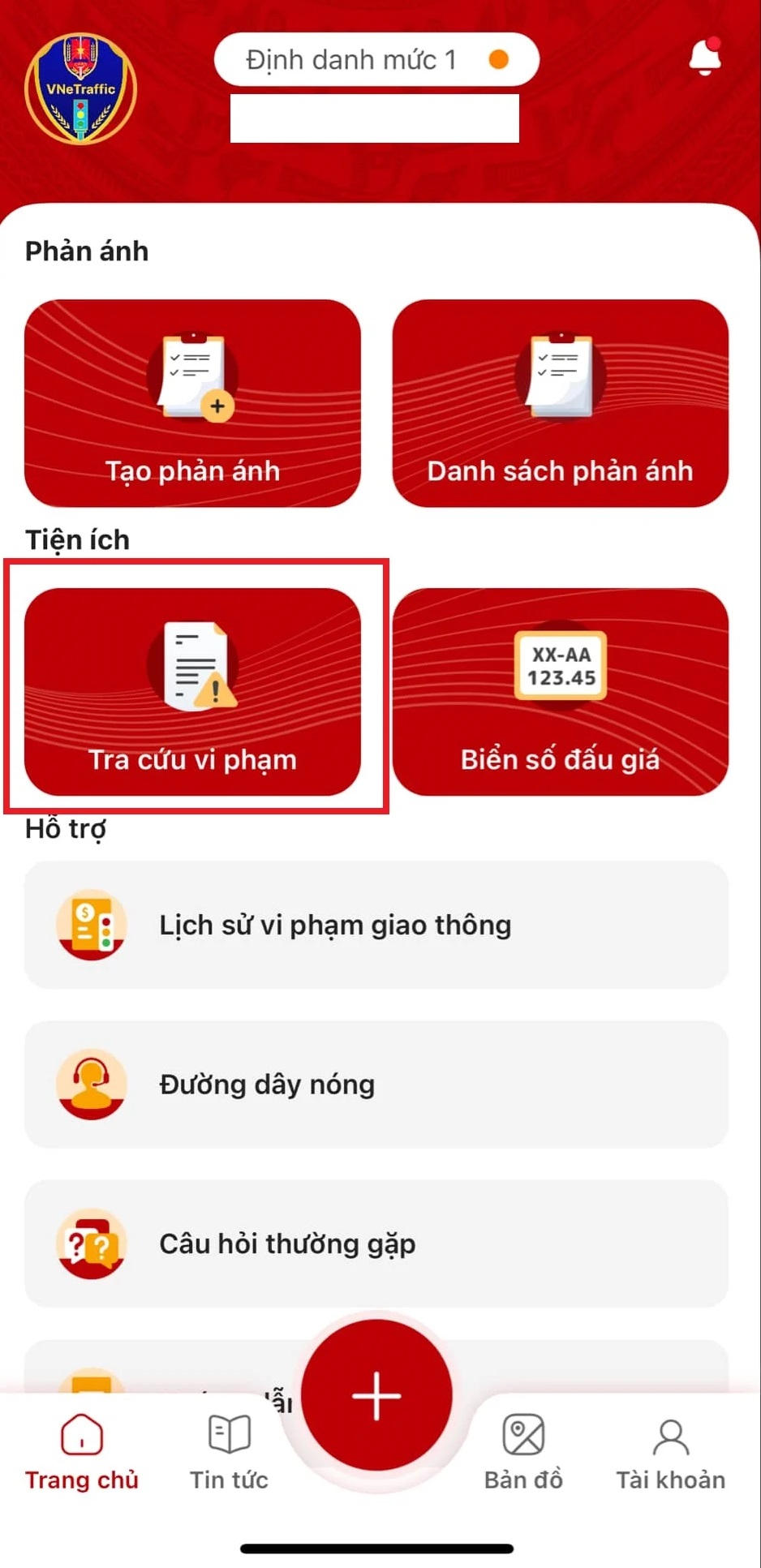 Để kiểm tra phạt nguội người dùng chọn mục "Tra cứu vi phạm".