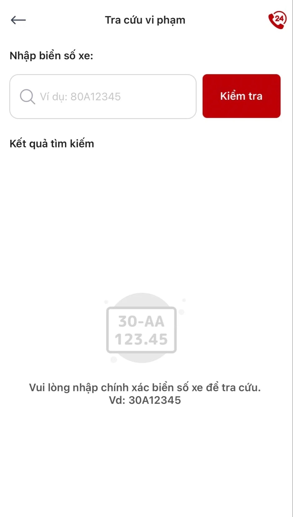 Sau đó, nhập biển số xe để kiểm tra.