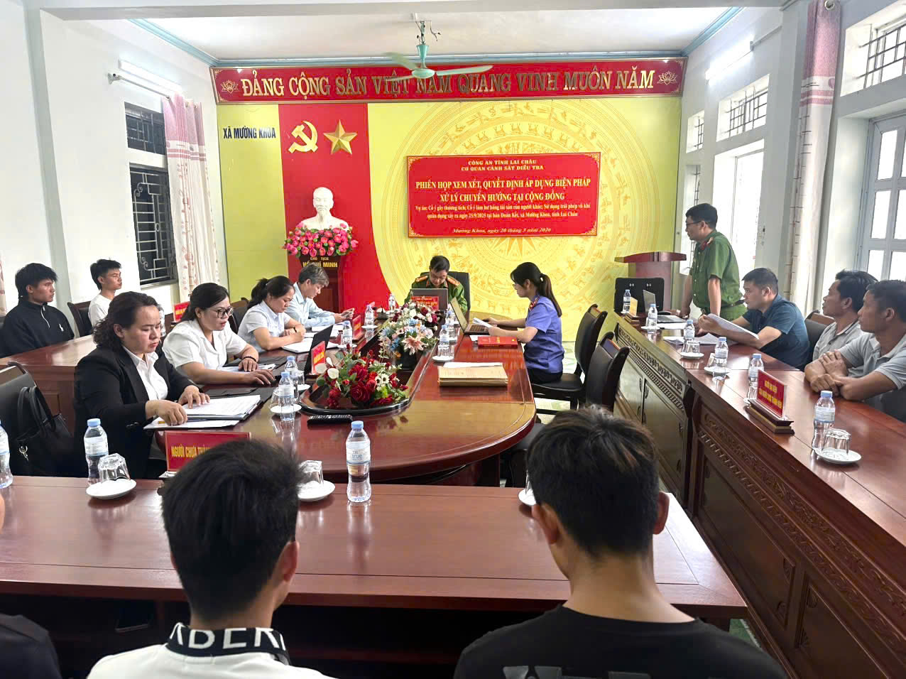 Tại phiên họp do đồng chí Lê Quốc Khánh, Phó thủ trưởng Cơ quan Cảnh sát điều tra Công an tỉnh Lai Châu chủ trì, với sự tham gia của đại diện lãnh đạo UBND xã Mường Khoa, Điều tra viên, Kiểm sát viên, người làm công tác xã hội, bị hại, người chưa thành niên là bị can, người đại diện hợp pháp, người bào chữa cho các bị can trong vụ án.