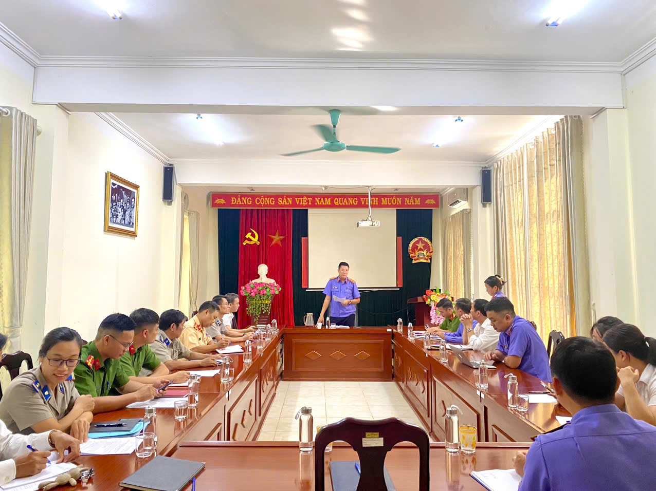 - ngày đăng: 16/10/2024Ngày 15/10/2024, tại trụ sở VKSND huyện Nậm Nhùn, liên ngành tố tụng huyện Nậm Nhùn đã tổ chức Hội nghị giao ban công tác phối hợp liên ngành tố tụng quý III năm 2024, đề ra phương hướng, nhiệm vụ trọng tâm trong quý IV năm 2024. Tham dự có đồng chí Nguyễn Văn Nam, Viện trưởng VKSND huyện Nậm Nhùn chủ trì Hội nghị; các đồng chí Lãnh đạo liên ngành và cùng các đồng chí Điều tra viên, Kiểm sát viên, Thẩm phán, Chấp hành viên…