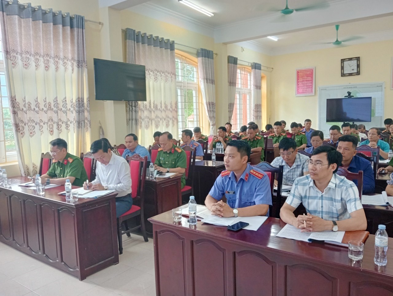 Tại Hội nghị, Lãnh đạo Cơ quan Cảnh sát điều tra, Viện kiểm sát, Tòa án huyện đã tập huấn, quán triệt nội dung cơ bản của ba chuyên đề: Chuyên đề Công tác tiếp nhận, giải quyết tố giác, tin báo về tội phạm, kiến nghị khởi tố; Chuyên đề công tác giám sát, giáo dục các đối tượng thi hành án hình sự tại cộng đồng; Chuyên đề công tác áp dụng biện pháp xử lý hành chính đưa vào cơ sở cai nghiện bắt buộc tại Tòa án nhân nhân.