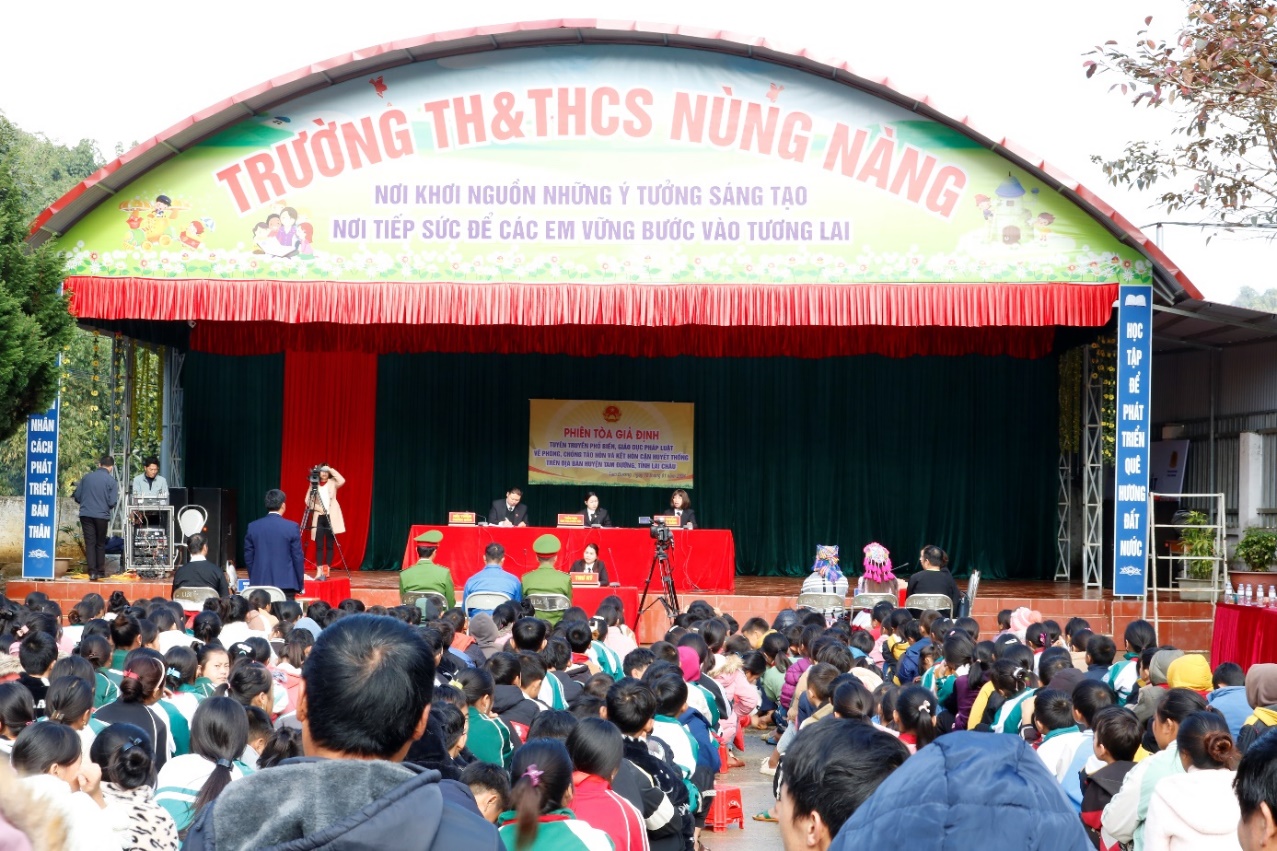 Ngày 18 tháng 01 năm 2024, tại trường Tiểu học và Trung học cơ sở xã Nùng Nàng, huyện Tam Đường, tỉnh Lai Châu, Viện kiểm sát nhân dân huyện Tam Đường đã phối hợp với UBND huyện Tam Đường tổ chức tuyên truyền phổ biến giáo dục pháp luật bằng hình thức tổ chức phiên tòa giả định.