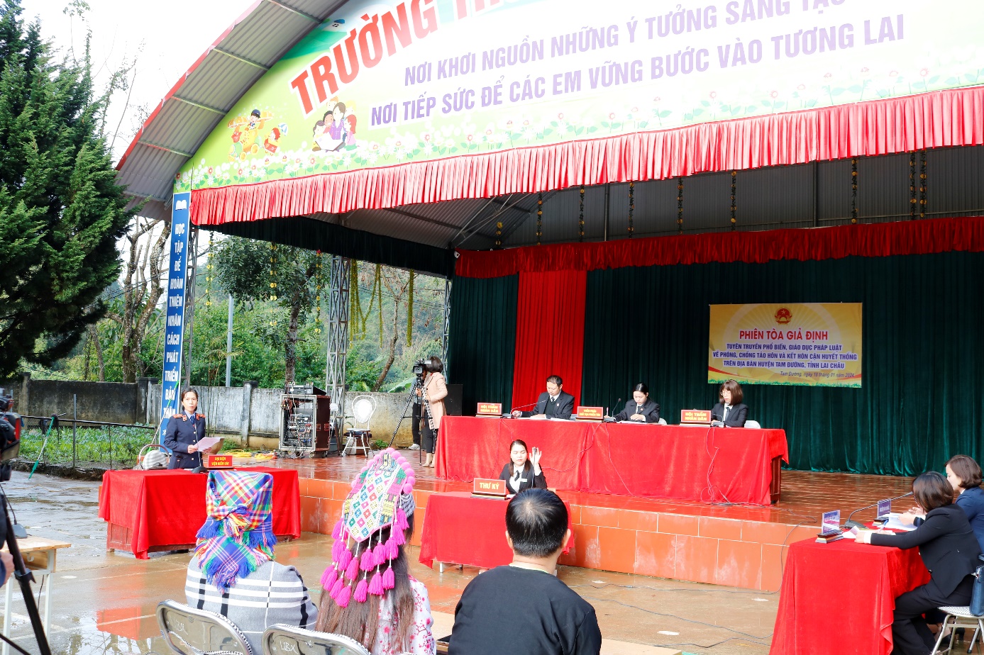 Để tiếp tục phát huy hiệu quả công tác tuyên truyền giáo dục pháp luật bằng hình thức tổ chức phiên tòa giả định đã được tổ chức thực hiện năm 2023, trong năm 2024 UBND huyện Tam Đường xác định các hình thức phổ biến, tuyên truyền giáo dục pháp luật để nâng cao nhận thức của người dân trong đó có xác định tổ chức các phiên tòa giả định với chủ đề “Tuyên truyền, phổ biến, giáo dục Pháp luật về phòng, chống nạn tảo hôn và hôn nhân cận huyết thống”.