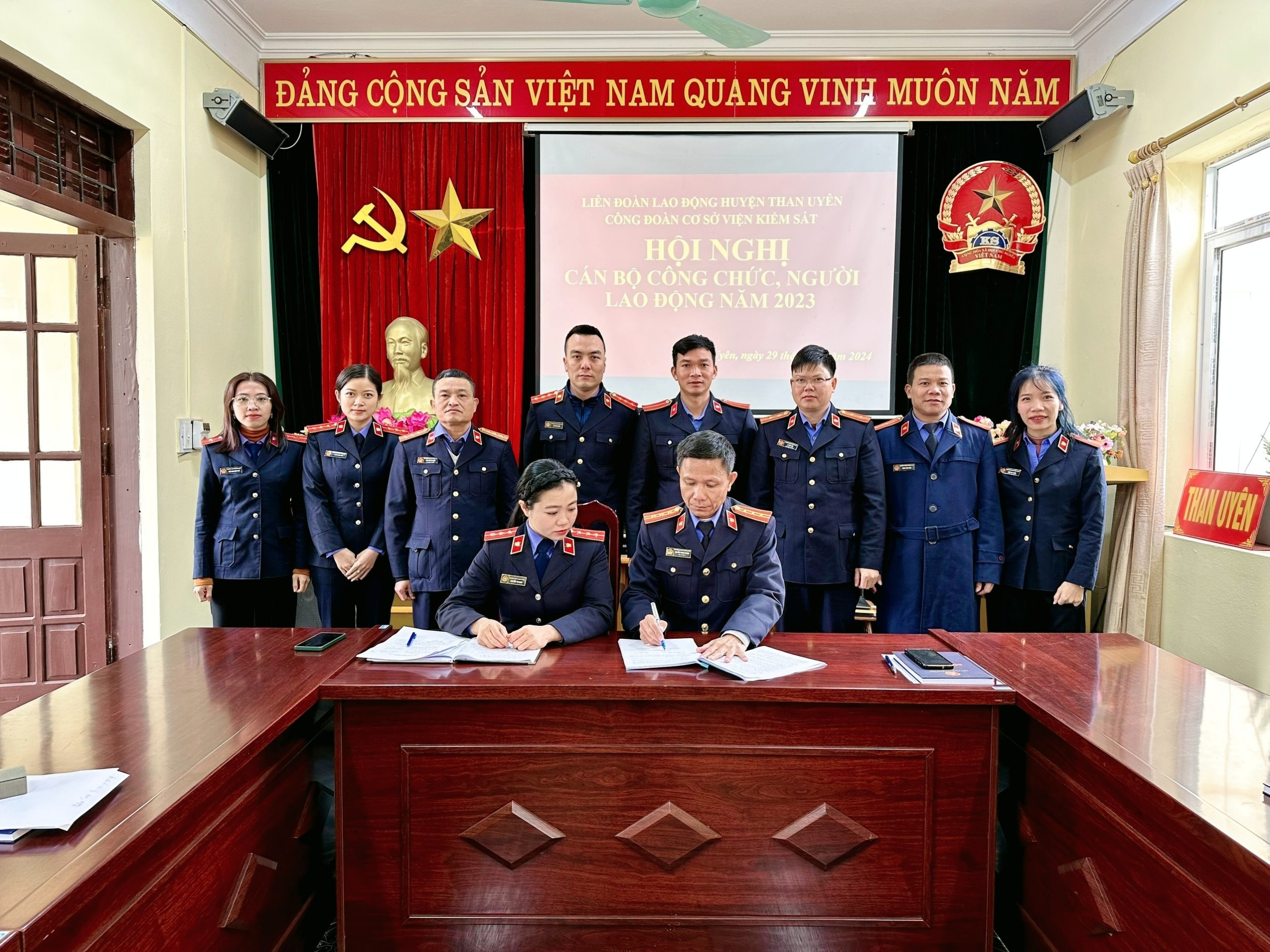 Trong năm 2023, được sự quan tâm lãnh đạo, chỉ đạo, hướng dẫn của Liên đoàn lao động huyện Than Uyên; sự lãnh đạo, chỉ đạo trực tiếp của Chi bộ Viện kiểm sát; sự tham gia tích cực của các tổ chức, đoàn thể, tập thể cán bộ công chức, người lao động trong đơn vị đã thực hiện tốt Nghị quyết Hội nghị Cán bộ công chức, người lao động năm 2023 đề ra.