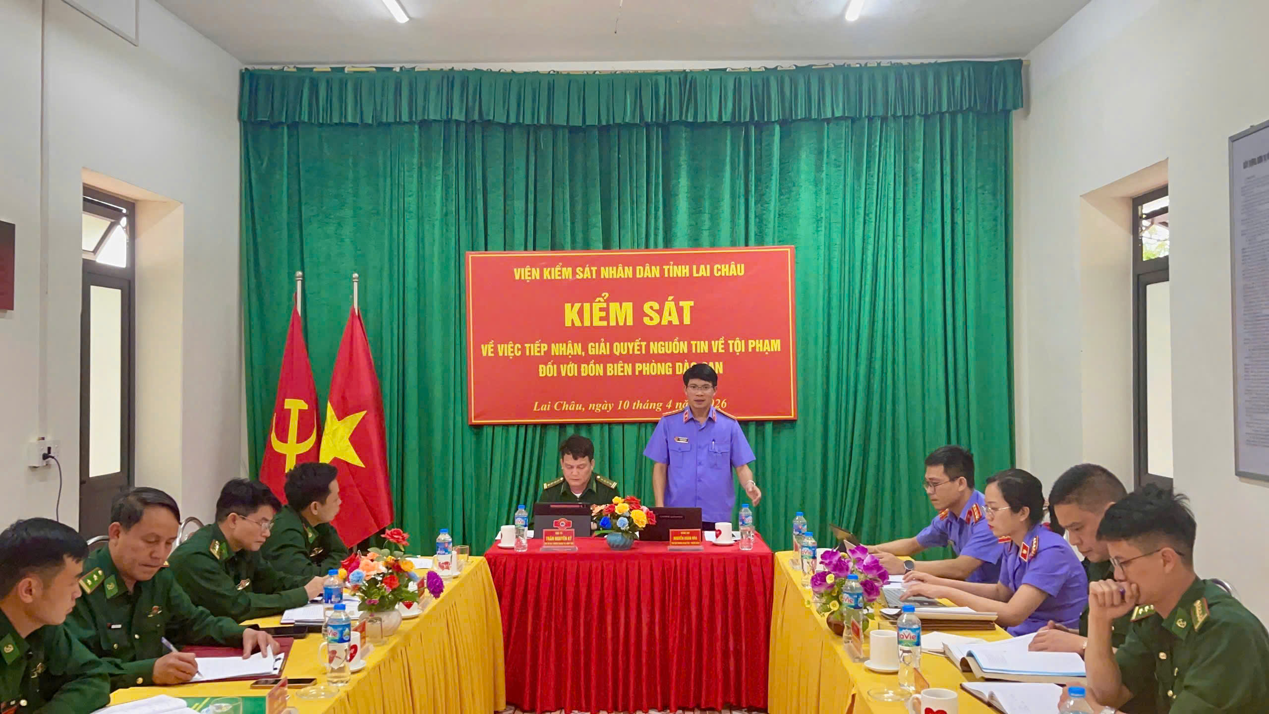 - ngày đăng: 13/04/2026Thực hiện Kế hoạch số 33/KH-VKSLC-P1 và Quyết định số 98/QĐ-VKSLC.P1 cùng ngày 05/3/2026 của Viện kiểm sát nhân dân tỉnh Lai Châu, từ ngày 09/4/2026 đến 10/4/2026, Đoàn kiểm sát Viện kiểm sát nhân dân tỉnh Lai Châu do đồng chí Nguyễn Xuân Hòa, Phó Viện trưởng Viện kiểm sát nhân dân tỉnh Lai Châu làm Trưởng đoàn đã tiến hành kiểm sát trực tiếp việc tiếp nhận, giải quyết nguồn tin về tội phạm tại Bộ đội Biên phòng tỉnh Lai Châu và Đồn Biên phòng Ka Lăng, Dào San, tỉnh Lai Châu.