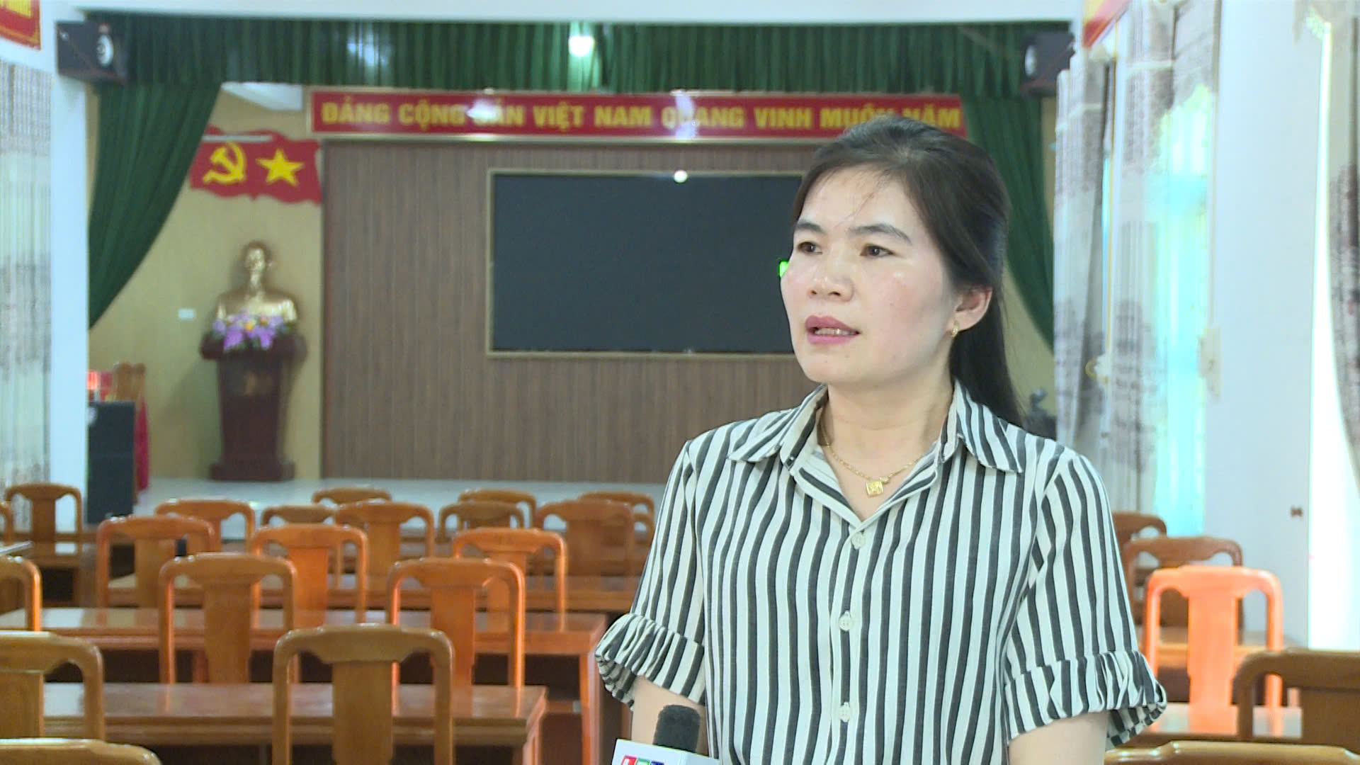 Đồng chí Phạm Thị Hương, Phó Chủ tịch UBND xã Bum Nưa phát biểu sau Hội nghị