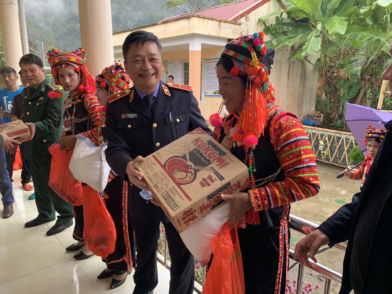 Các đồng chí Lãnh đạo trao quà Gian hàng 0 đồng cho nhân dân bản Tó Khò, xã Mù Cả.