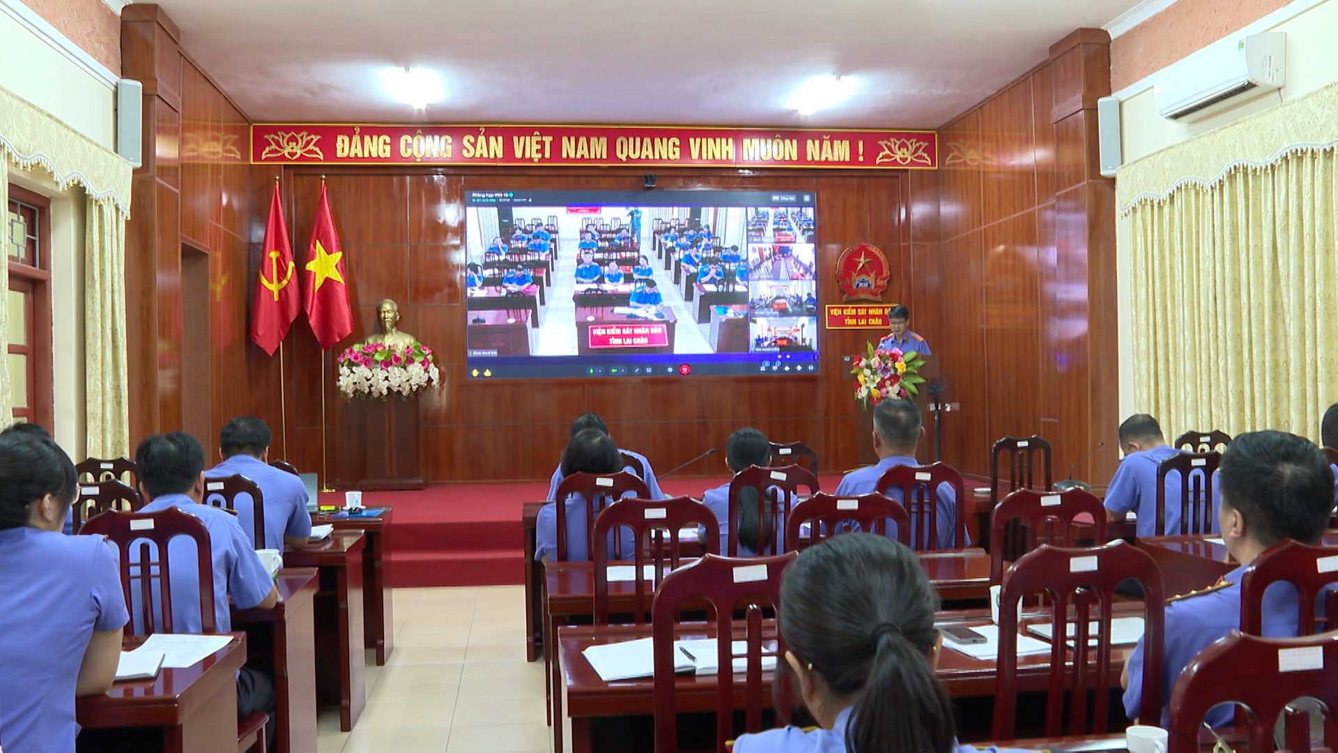 - ngày đăng: 27/09/2024Ngày 26/9/2024, VKSND tỉnh Lai Châu tổ chức Hội nghị giao ban công tác kiểm sát 9 tháng năm 2024. Hội nghị được tổ chức bằng hình thức trực tiếp kết hợp với trực tuyến, kết nối từ điểm cầu VKSND tỉnh đến 08 điểm cầu Viện kiểm sát cấp huyện. Đồng chí Nguyễn Huy Thắng, Phó Bí thư Ban cán sự đảng, Phó Viện trưởng VKSND tỉnh chủ trì Hội nghị. Tham dự Hội nghị tại điểm cầu VKSND tỉnh có các đồng chí Lãnh đạo Viện, lãnh đạo các Phòng, các đồng chí Kiểm sát viên trung cấp. Tại điểm cầu VKSND huyện, thành phố có các đồng chí Lãnh đạo, các đồng chí Kiểm sát viên, Kiểm tra viên, Chuyên viên.